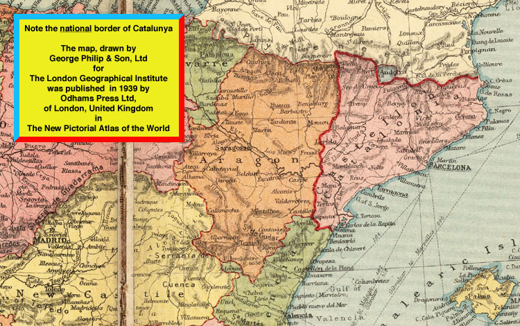 In the autumn of 1974 I bought a copy of The New Pictorial Atlas of the World from a second hand book shop in Sunderland. On pages 48-49 I found a map of the Iberian Peninsula which showed Catalunya with a national border. |