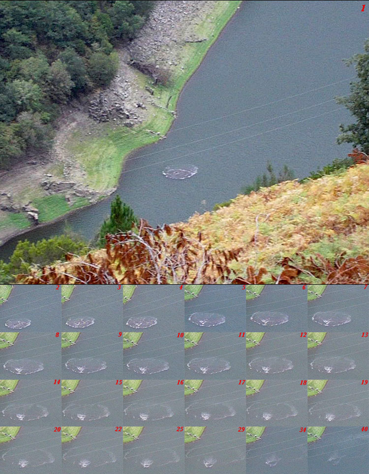 Photos 1 and 41 of a sequence taken of a sudden eruption in the lake