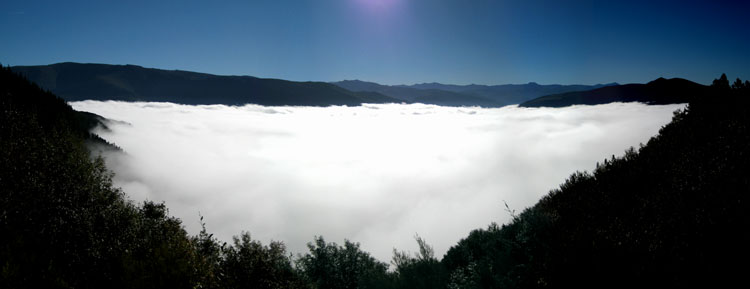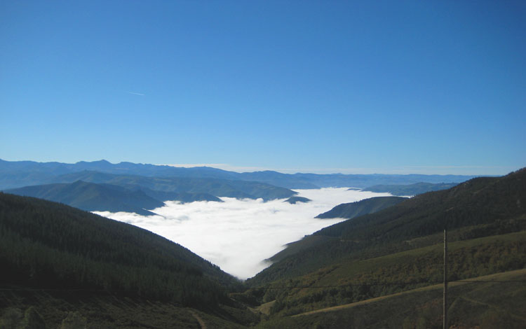 Morning, temperature inversion from O Carbalin looking towards the mountains of Asturias and Leon